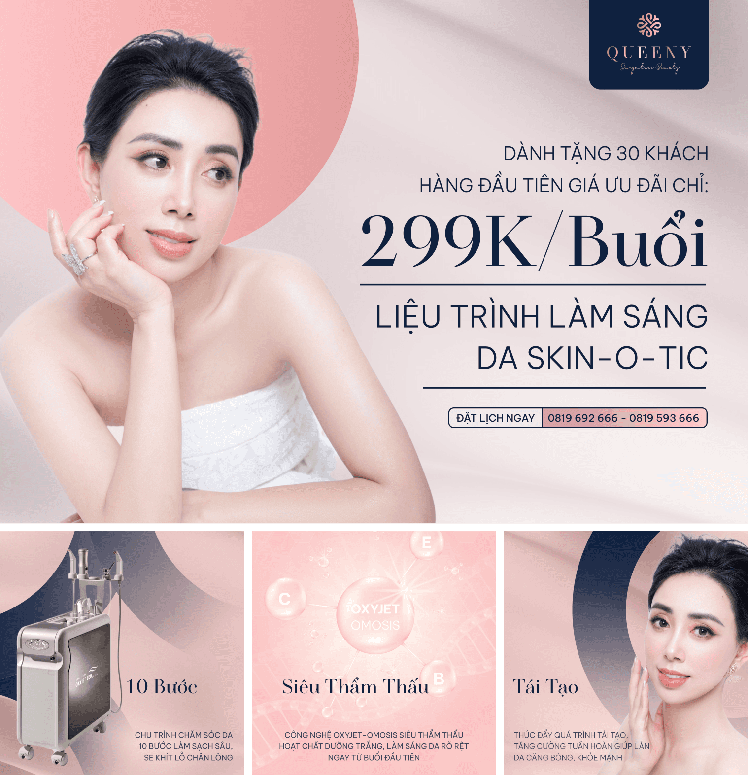 A series of social media posts designed for a beauty clinic, a brand that emphasizes gentle aesthetics and professional skincare. The visuals aim to reflect the clinic’s modern, trustworthy, and elegant identity through a cohesive use of soft gradients, minimal typography, and a calming pink–nude palette.